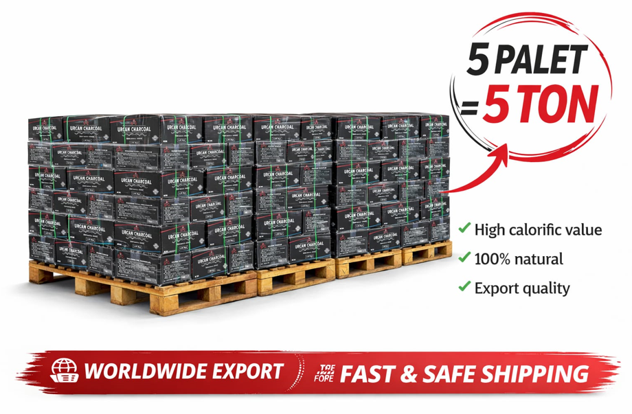 Each pallet is securely packaged to ensure safe transportation and convenient bulk handling. Thanks to its high carbon content and low ash production, our charcoal burns efficiently and provides reliable heat for grilling and cooking.